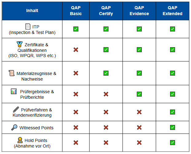 QAP Basic | QAP Certify | QAP Evidence | QAP Extended