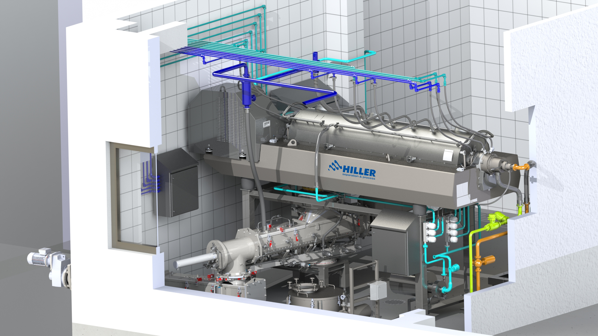 In chemical and pharmaceutical industries, purity, safety, and efficiency are critical. HILLER decanter centrifuges meet the highest quality standards and ensure precise solid-liquid separation – even for complex or sensitive materials. With application-specific designs, corrosion-resistant materials, and intelligent automation, HILLER provides reliable process safety and consistent product quality. For demanding environments in chemical, process, and pharmaceutical production.